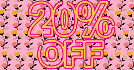Image of 20 percentage text over flowers on pink background. sales, retail and savings concept digitally generated image.