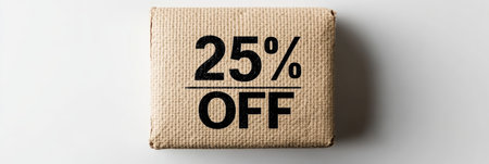 Beige Minimalistic Design On A Square Cardboard Box With 25 Off Text For Sales And Promos
