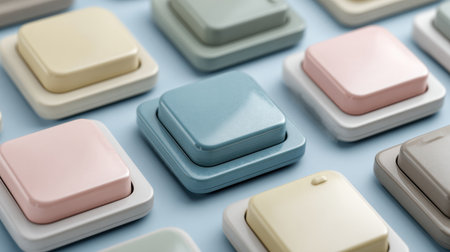 Pastel vials of botulinum therapy are neatly arranged over a light background, highlighting their modern design and therapeutic use.