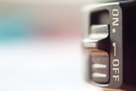 Close-up of little On/Off switch with soft blurred background
