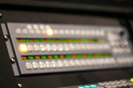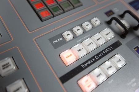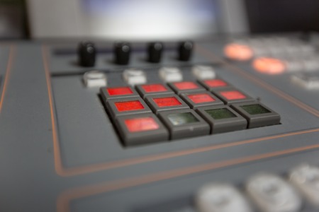 Button of Switcher buttons in studio TV station, Audio and Video Production Switcher of Television Broadcast with bokeh