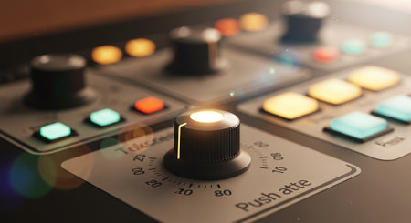 Detailed view of a smart home technology management control panel showing various knobs and buttons. The design emphasizes functionality and modern aesthetics for seamless home automation.