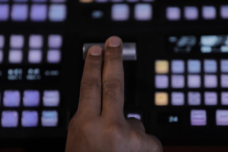 Hand operating video production switcher, television, audio visual, av,