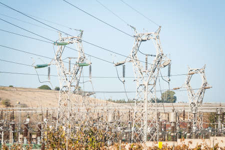 Outdoor High Voltage Electricity Power Station, Clear Blue Sky