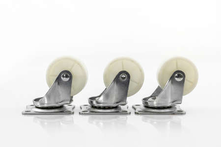 Furniture caster wheel made from superlene, Industrial spinning wheel on white background.