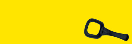 Black magnifying glass, magnifier on yellow background with copy space using as search, transparent, science discovery or SEO concept