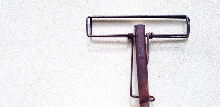 Old rusty stainless steel mop with copy space isolated on white wall background - Object and Cleaning tool concept