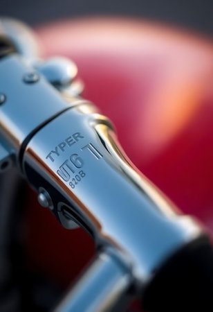 Steel handle on industrial equipment. Shallow depth of field.