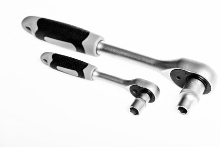 Service with Integrity. socket wrench isolated on white background. Set of tools isolated on white background. chrome plating. Socket Spanner Wrench