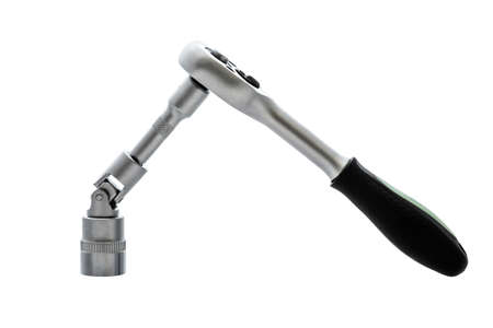 Socket metal wrench with black handle over white isolated background