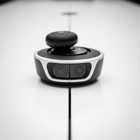 Close-up of a camera lens against a soft background showcasing intricate details and design.