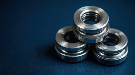 These identical, black-coated car parts are specially designed for use in the automotive industry. These special screw connections are visible on a black background.