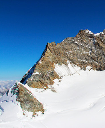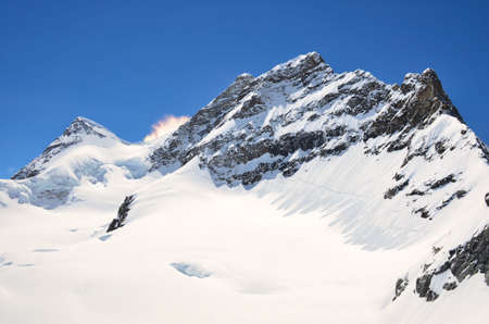 Snow mountain at summer day in Jungfrau, Switzerland.