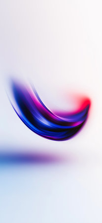 Dynamic abstract composition featuring a swirling shape in shades of red and blue against a white background, creating a sense of motion and energy