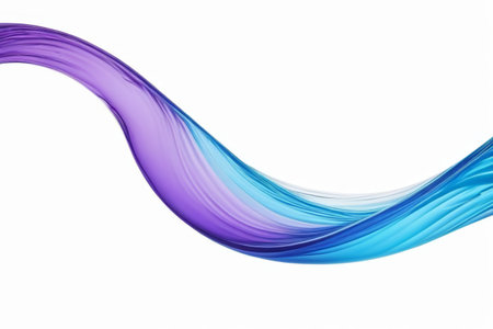 Translucent waves of blue and purple liquid flow across a white background, creating a smooth, dynamic abstract shape.