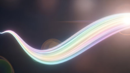 This image features a dynamic, wavy line that traverses the frame, showcasing a mesmerizing blend of pastel colors against a dark, blurred background. The wavy pattern is accentuated by subtle, shimmering effects, creating a sense of movement and energy. The overall composition is abstract, with the wavy line serving as the focal point, drawing the viewer's eye through its fluid, undulating path.