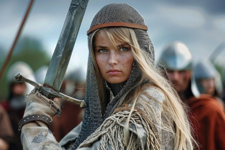 Portrait of a Slavic woman warrior in chain mail: depicting a strong and warlike figure reflecting the spirit and heritage of Slavic culture in its struggle and defense
