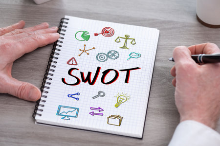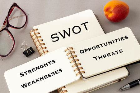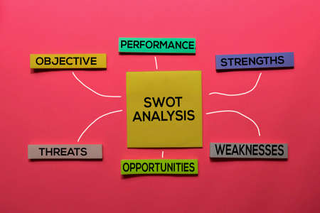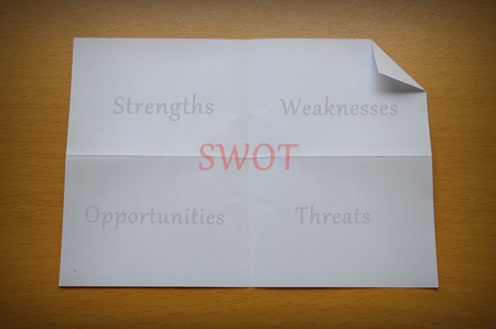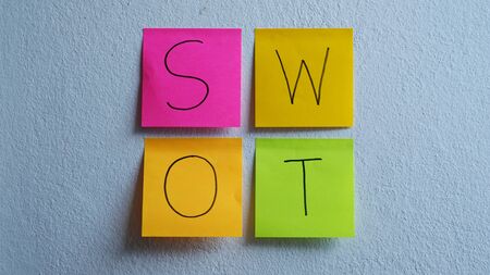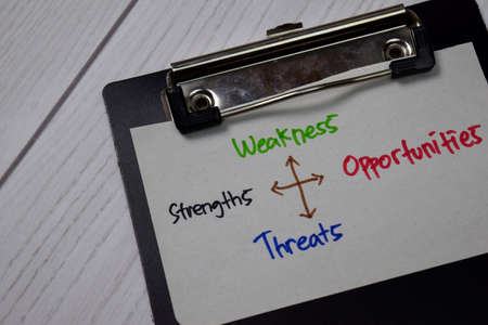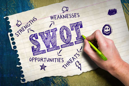 Strengths, Weaknesses, Opportunities, Threats analysis written note. SWOT Analysis.