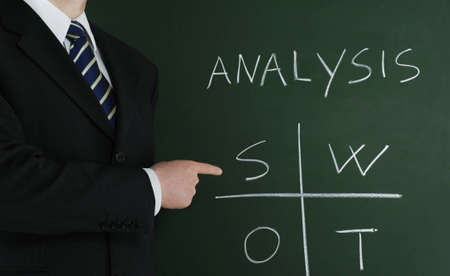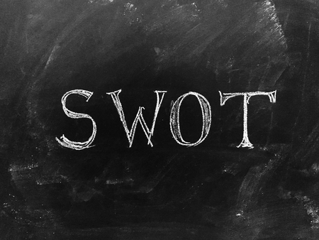 SWOT Analysis Handwritten on Blackboard - Stock Image as JPG File
