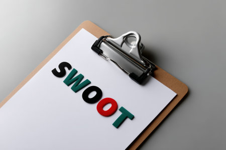 SWOT analysis displayed on a clipboard provides a clear tool for strategic business evaluation.