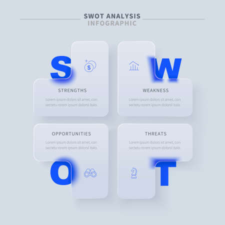 Glassmorphic SWOT diagram. Minimal ui infographic design for business strategy analysis or presentation.