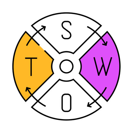 A focused visual representation of SWOT analysis with colorful paper clips, highlighting strategy and planning. Ideal for business development and decision-making themes.