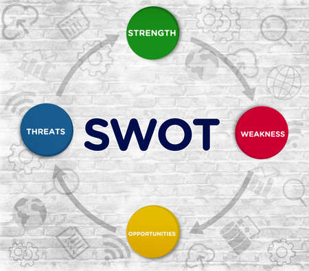 SWOT analysis concept: strengths, weaknesses, opportunities and threats