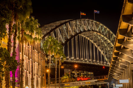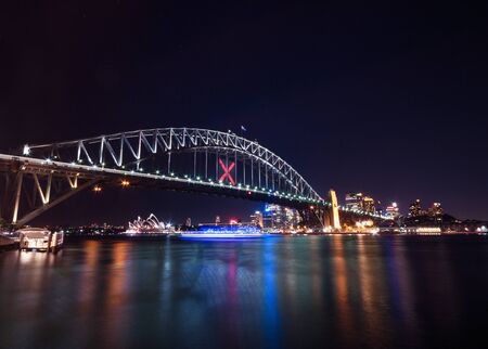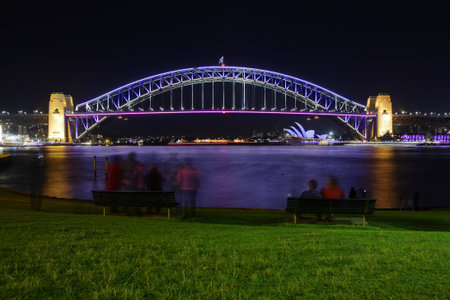 SYDNEY - June 10, 2016: Sydney Harbour Bridge in the night illuminated during Vivid Sydney Festival. Vivid Sydney is an annual outdoor Festival of Light, Music & Ideas in Sydney, Australia