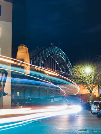 Trails of car light with Sydney Harbour Bridge on the background.