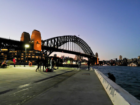 SYDNEY, AUSTRALIA - MAY 5, 2018: Sydney Harbour Bridge, which is a landmark near the famous Sydney Opera House in the evening.
