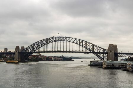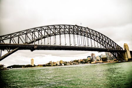 View of Sydney Harbour Bridge on a cloudy day. Sydney, Australia, 2019.