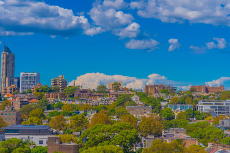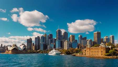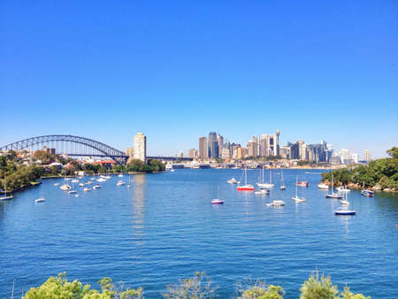 Sydney, Australia - April 4, 2021: Sydney skyline view on a sunny day with blue sky.