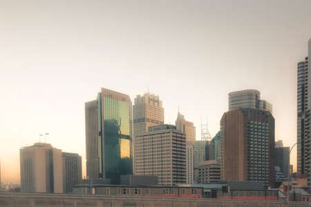 Modern buildings in Sydney city, Australia under the sunset.