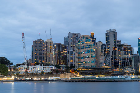 Sydney, Australia - December 25, 2021: Dusk view of Sydney CBD skyline.