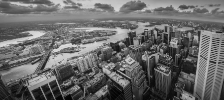 View of Sydney in cloudy weather - full frame horizontal composition - Potts Point district and other