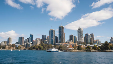 central sydney city CBD urban skyline in australia from the water taken from the manly ferry