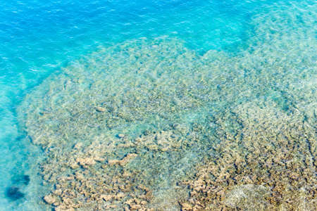 Spectacular aerial sea landscape of sandy beach and crystal clear water.