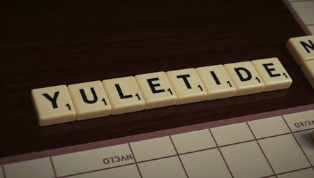 This image was generated with AI. The photo highlights a playful arrangement of colorful Scrabble tiles scattered across a polished marble table. The vibrant hues of the wooden tiles create a striking contrast against the clean and elegant marble surface, celebrating the joy of word games and creativity. Perfect for National Scrabble Day or projects emphasizing games, education, or leisure.