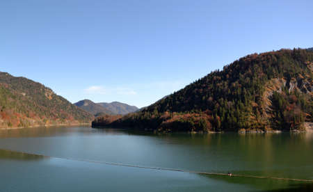 Sylvenstein reservoir lake in autumn, near Bad Toelz, Bavaria, Germany, Europe