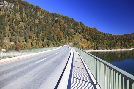 bridge at the sylvensteinspeicher lake in bavaria - photo