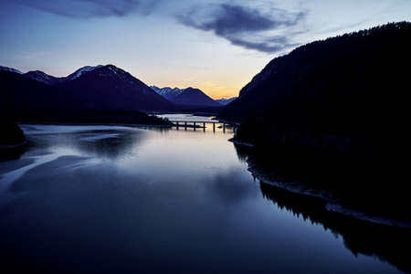 evening at the sylvensteinspeicher lake in germany