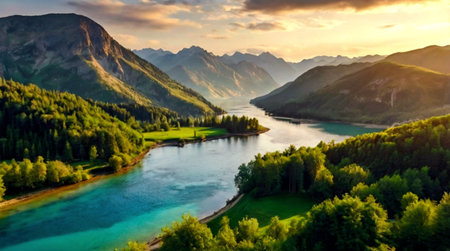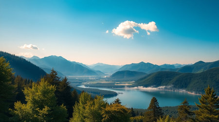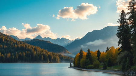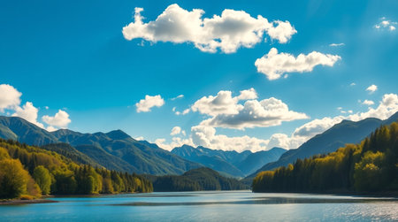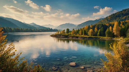 Peaceful lake scenery in the mountains and forests