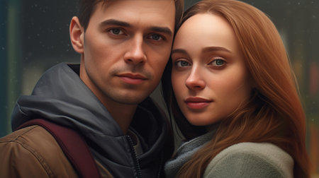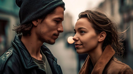 Generative AI : Incredulous girl meets her boyfriend after a long time Portrait of a two young lovers