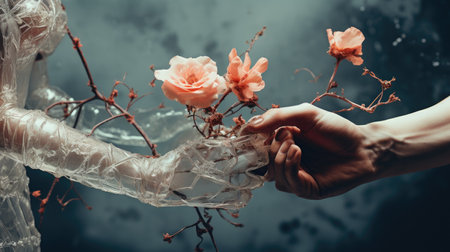 Blossoming Love: Two Souls Embracing Blooms --ar 3:2