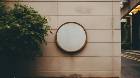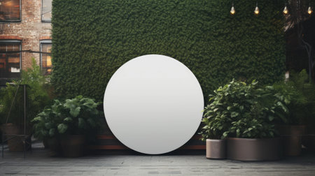 a rounded blank company sign mockup placed outdoors, a space for adding a company sign or logo