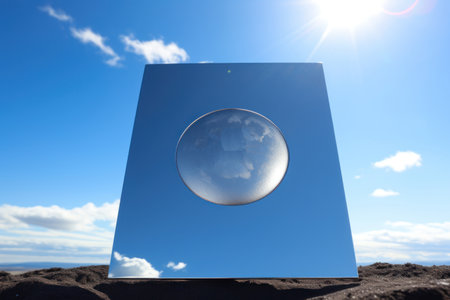 Conceptual image of blue sky and clouds reflected in the mirror