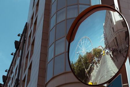 Reflective mirror in urban environment isolated on white background