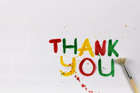 Thank you text written on sticker used for gratitude and customer appreciation.