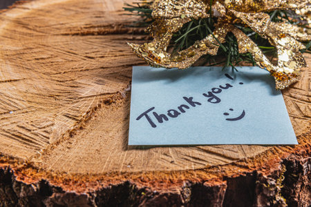Thank You. Text on adhesive note paper. Event, celebration reminder message.