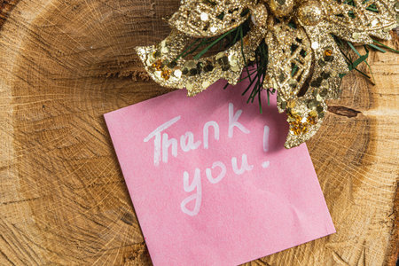 Thank you note. Concept of manifestation of gratitude and appreciation. Flat lay. Copy space